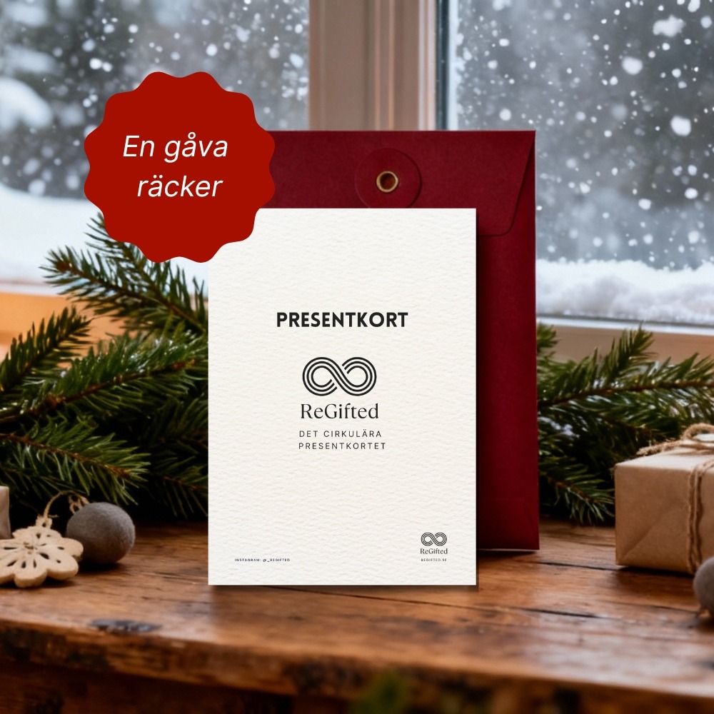 ReGifteds presentkort är den hållbara gåvan där alla hittar något. Presentkortet gäller hos över 20+ cirkulära butiker och varumärken online – och utbudet växer i snabb takt. Se hela utbudet.